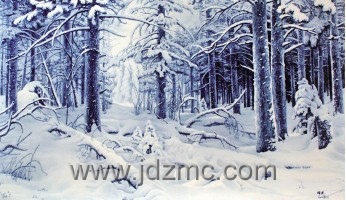 代表作3:《薄雾余光》。同样是青花手法,但是描绘风景,尤其是雪景就会显得特别冷艳。《薄雾余光》这幅画中冬天的森林树木不再郁郁葱葱,而是干净利落地矗立在雪地里,没有了树《的茂盛,没有了绿色,却被洁白的雪花装扮的银装素裹、分外妖娆,这样的树木没有树《,在寒冬里枝干依然挺拔,这么顽强的生命力启示着我们在人生的道路上无论遇到什么困难和挫折,都要傲立于风雪中,毫不畏惧。记者从这幅作品中读到了坚强。
