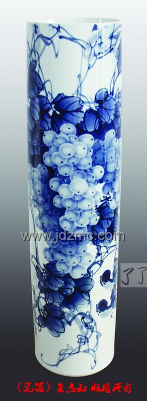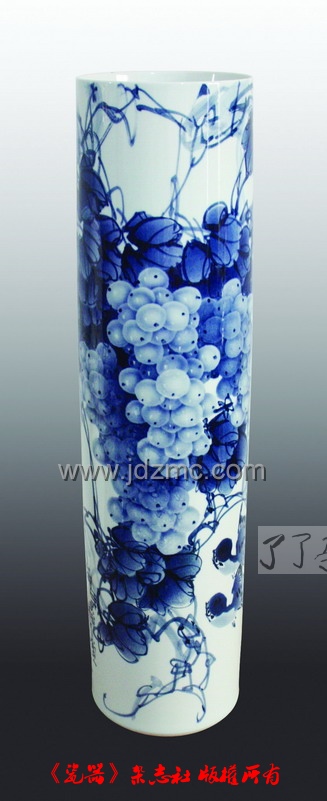 人物名片:吴志辉,男,艺名乐陶山人,1968年生于景德镇。江西省高级工艺美术师。江西省陶瓷美术家。中国收藏家喜爱的陶瓷艺术大师。获全国文联美术等级考核陶瓷美术一级资格。1992年毕业于景德镇陶瓷职工大学陶瓷美术系。景德镇瓷都画院副院长,景德镇陶瓷书画院副院长,江西省教育学会陶艺教育专业委员会副秘书长。曾任景德镇市红星瓷厂美研所副所长、美研室主任;先后执教过景德镇陶瓷职工大学,江西师范大学美术系景德镇分部。中国工艺美术学会会员,国际东方书画艺术研究会会员,江西省工艺美术学会会员,中国美术家协会江西省分会会员,景德镇美术家协会常务理事,景德镇青联委员,高岭陶艺协会会员。师承中国工艺美术大师黄卖九先生,作品以青花见长,致力于青花新探索,现代感极强。 《瓷器》记者 李广明 文/图 青花是景德镇的一个符号,在这个符号上已经被赋予了太过厚重的文化积淀,也已经有太多名家在这个符号上标注了自己的印记。因此要想在青花上独树一帜,需要莫大的勇气来传承并否定传统和经典。 大胡子吴志辉就试图这样走出一条自己的路,这位外表粗犷实则内心恬静的陶艺家沉溺在自己的青花世界里,慢条斯理地寻找着青花水墨一般的清新、淡雅和从容。 全身心投入其中,吴志辉的青花无疑标注着自己的印记,这是他的青花世界,非诚勿扰。