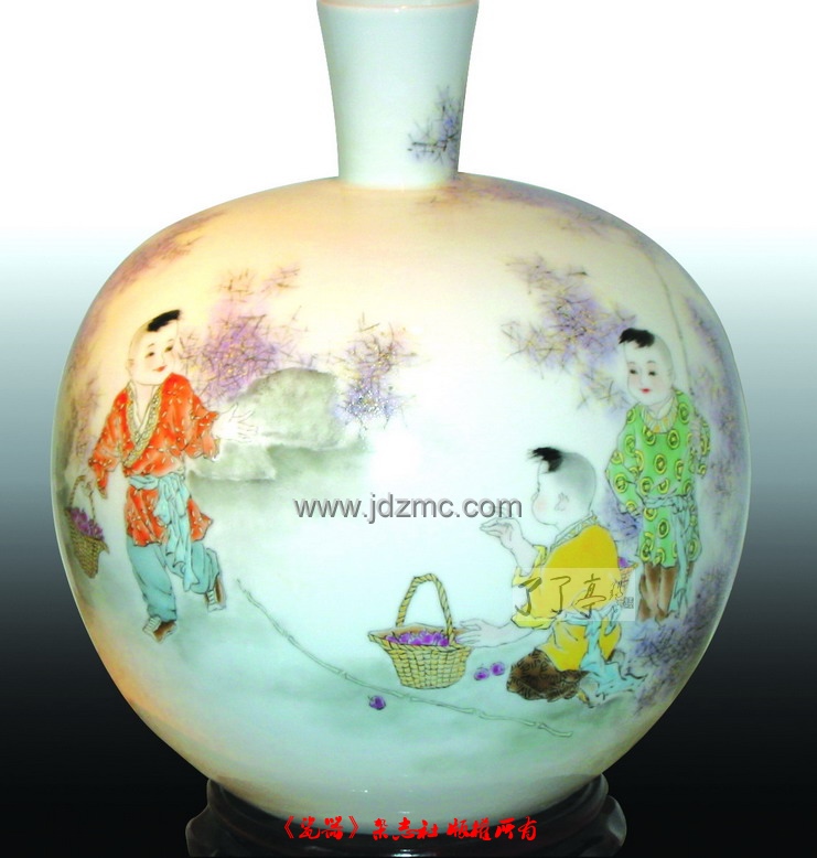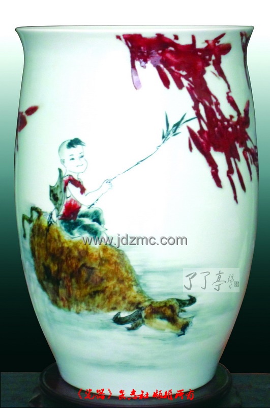 人物简介: 俞暄,1969年出生,江西婺源人,江西省高级工艺美术师,收藏家喜爱的陶瓷艺术大师,中国工艺美术协会会员,江西省美术家协会会员,景德镇美术家协会常务理事,景德镇女陶艺家协会常务理事,景德镇中山陶瓷绘画研究院副院长,景德镇瓷都画院副秘书长,江西省工艺美术学会会员,师从中国工艺美术大师张育贤先生,作品多次参加国内外陶瓷艺术大展并获奖,深得收藏家的青睐。 《瓷器》记者 朱袁成 文/图 诗歌是一种语言的艺术,它高度凝练,集中地反映社会生活,用丰富的想象、富有节奏感、韵律美的语言和分行排列的形式来抒发思想情感。“动声曰吟,长言曰咏,做诗必歌,故言吟咏情性也。”实际上吟诗的过程也就是品诗的过程,吟诗就是对诵诗的深化———要“诵”出诗的情性,即吟出其情其感。诗画指的是“融合诗与画为一体”的艺术作品,而俞暄的画就仿佛皆从诗中而来,因诗而画,画由心声。 我们知道,诗歌就其本身而言,它是作者想象的表现,因此品味诗歌,就必须调动读者丰富的想象力,唯此才能步入作者的内心,体会作者的情感,达到“吟咏情性”,赋诗如此,作画又何尝不是呢? 俞暄,原籍江西省婺源县,1969年6月出生于江西省景德镇市一个教师之家,1989年毕业于景德镇教育学院中文系,后又进江西师范大学进修本科。自幼酷爱绘画,在读中学时就拜张育贤先生为师学习素描、色彩等美术基础,之后在中国书画函授大学学习中国画。这些艺术的积累让俞暄的作品具有一种独特的审美情趣。 她擅长人物花鸟以及综合装饰,尤以影青雕刻人物见长,讲究形式美感与装饰趣味,将诗词的意境融于作品,雕刻的仕女高雅大方,清新脱俗,再配以高温颜色釉的背景衬托,形成较为理想的视觉效果。 也许自己身为女人,因此更懂得女性的柔美,凭借女性特有的对美的直觉和体验,以贴近现实生活的形象表现,通过淡雅的色彩描绘春色的灿烂和秋色的恬静。值得一提的是,她笔下的仕女人物姿态优美,神情细腻,气韵生动,富有艺术感染力,通过眼神、姿态来传递一种美的讯息,让观者感觉她是活生生地呈现在眼前,从而产生心灵上的交流。“赏画如赏诗”,这是对俞暄作品的最好诠释。 除了仕女,她还能通过天真的童子表达人生的乐趣,以虚实相生、情景交融的构图形式和以线写形、以意传情的造型手法,着力为传统的婴戏图注入现代审美情趣,以花的神韵,人的天趣去展示自己向往自然、回归童真的内心世界。 俞暄在用自己的艺术作品和观众交流时,通过情感纯真和具有生命活力的艺术形象———孩童,去表达她对社会、自然、人生的体验和认知。她创作设计的陶瓷童趣系列作品,使人远观有景,近察有趣,洋溢出一股清新、素雅、天然、率真的气息。 在她的笔下,生动活泼、纯真可爱的孩童,在细品神悟中,仿如闻听乱世中的佛号禅音,在浅唱低吟间,往昔的时光,已去的童性,便悠悠地、淡淡地被心灵唤回,回到了身边,来到了眼前。随着这些可爱的孩子慢慢地渗入记忆中,猛然间,让人回归那个无忧无虑的童年…… 俞暄所作陶瓷美术作品,构图疏朗,不求奇求怪,而求自然求天趣。构图严谨,造型独特,充分利用高温颜色釉产生的色韵肌理,以达到高度概括的艺术效果,具有丰富的文化内涵。 以笔墨传情,用心灵作画,绘写的陶瓷艺术佳作,在整体装饰手法上采用料块面截图,分割画面,增强了层次感和韵律美。俞暄的作品依循当代人的审美感觉、记忆逻辑,遵循普遍经验的单纯性质,善于把最基本、最深沉的生活体验和生活情感诗意化、情趣化。在今后的创作道路上,俞暄仍旧想沉静下来探求创新,她认为前人的优良传统需要学习,但还是要尝试和创新出自己的风格,要想脱颖而出就要走自己的路,只有拥有了自己的东西才能被大众所认可。 |