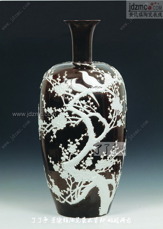 这件作品,林正茂随瓶形的变化画了一枝蛟龙般盘旋的红梅,纵横交错的枝干上,99只喜鹊或仰天鸣唱,或低头交谈,或亮翅欲翔,或回首弄尾,它们活跃在春天里,传递着四面八方的喜讯。为了画好众多形态不一的喜鹊,林正茂翻阅了大量的画册和书籍,并观察大自然的禽鸟,在脑海里积累了千姿百态的喜鹊形象,然后在构图中一组一组分别组合,对喜鹊采取拟人的手法,赋予他们个性色彩。