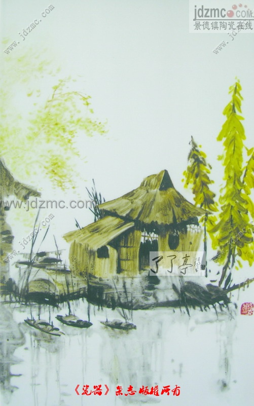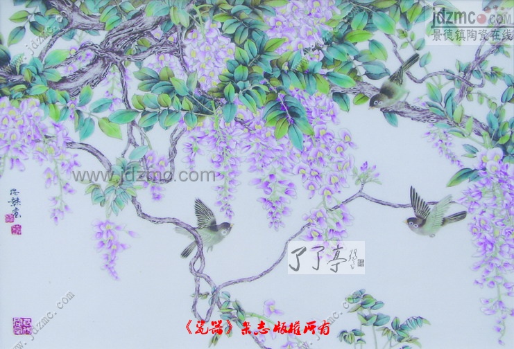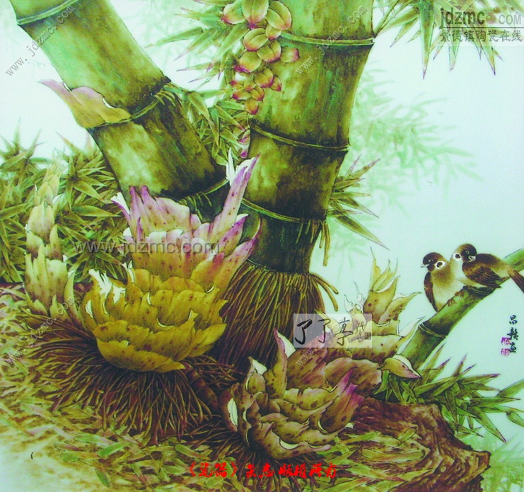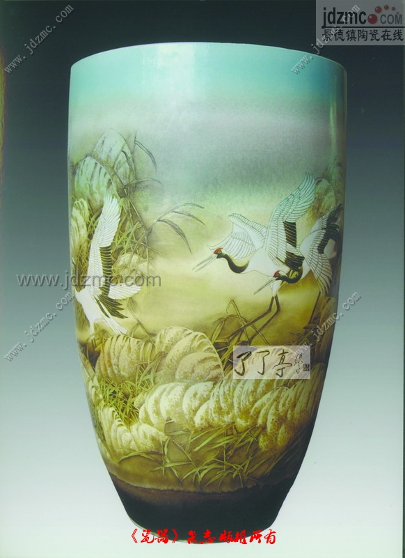 占昌赣的荷花系列瓷画,形式活泼而内涵丰富,具有深厚的人文精神和扎实的笔墨功力,以瑰丽而精致的写实手法、渊博的学术修养、深厚的生活积累而取胜。他广结师友,取长补短,使得他的荷花系列瓷画透出一股清风徐来、超凡脱俗的高雅和洒脱。
