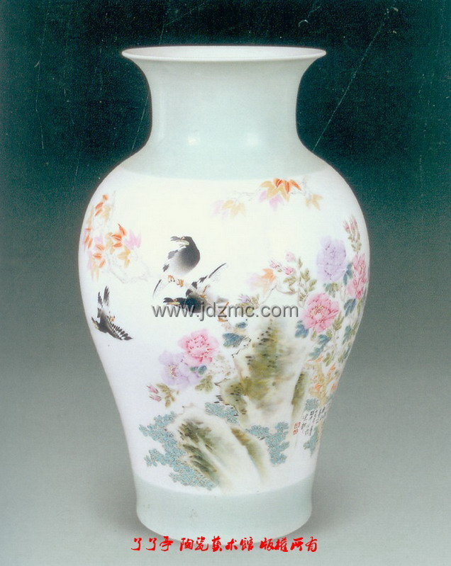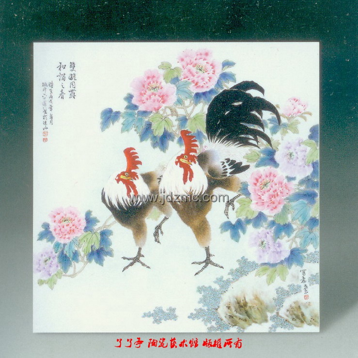 双雄同舞·粉彩瓷板八哥月季·粉彩瓷板