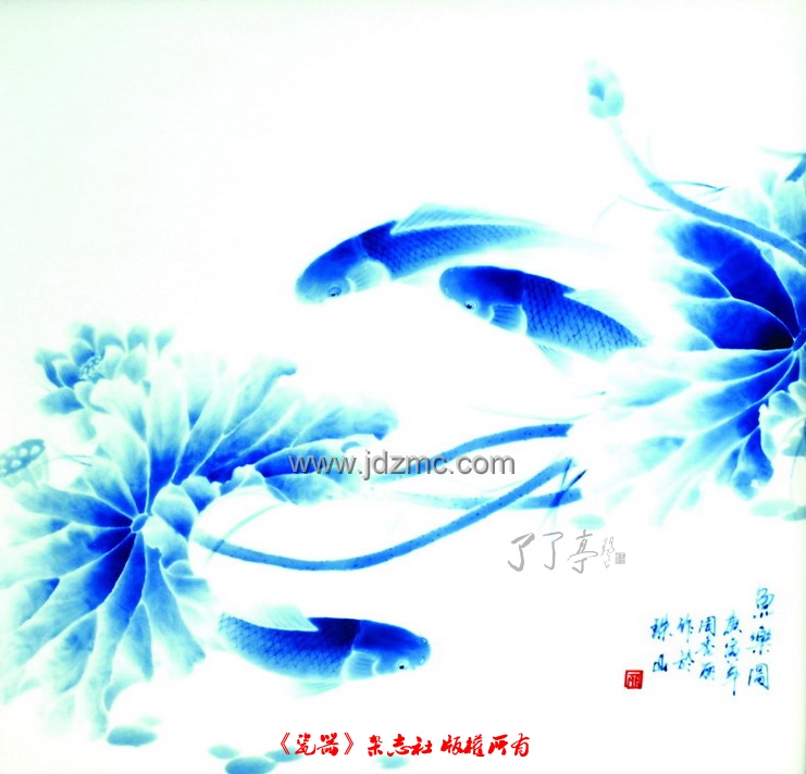回到家里,周秀丽找来有关书籍,一边阅读,一边观摩名家作品,然后自己动手尝试着青花分水。周秀丽说,整个练习的过程,没有让自己感到难堪,出乎意料的顺利。因为无师,所以处处为师,在周秀丽的意识里没有了条条框框的束缚,因而分出来的作品却有着与众不同的效果。青花分水作品,清新淡雅、层次分明的特性非常符合周秀丽的性格特点,于是她便一头钻进了青花分水的创作与研究,并以此作为自己陶瓷艺术的发展方向。