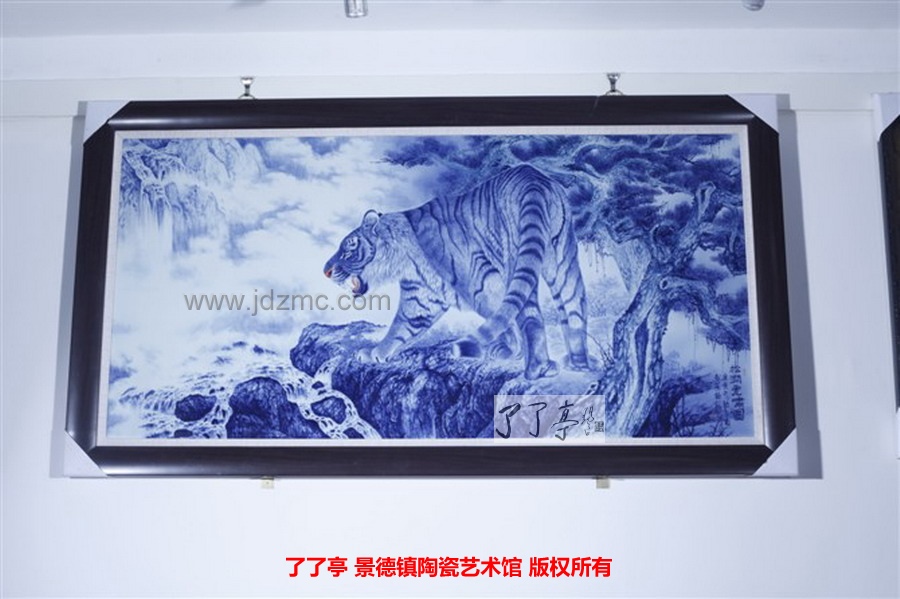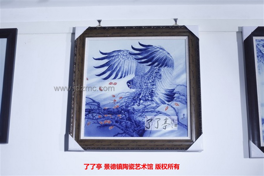 看赵方现在的青花工笔作品,已日渐成熟,其青花花鸟作品,娇俏灵动,装饰美感强,趣味盎然;雄鹰、猛虎等飞禽走兽造型准确,神态逼真,富有动感,毛羽刻画细腻,气势夺人;而青花雪景作品则画工细腻,色泽粉润,渲染到位,青白色调给人耳目一新的感觉。