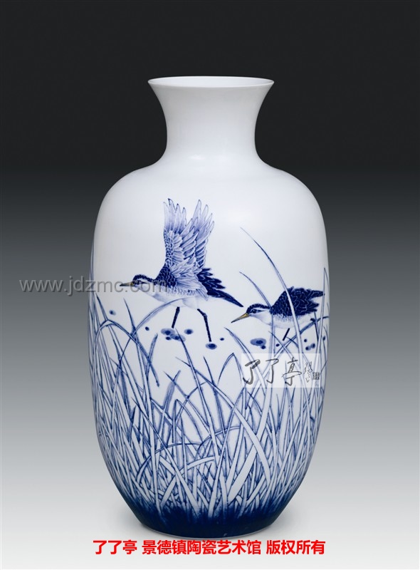 一直以来,赵方主攻青花工笔创作,他喜欢青花带给人的那种恬静轻盈,清新雅致的美感,这也是他最擅长的。同时,他坚持工笔绘画,工笔线条是作画构图的基础,最见功夫。而且,赵方认为,国画依然是和陶瓷创作最为相得益彰的绘画形式,这个努力的方向不会改变。