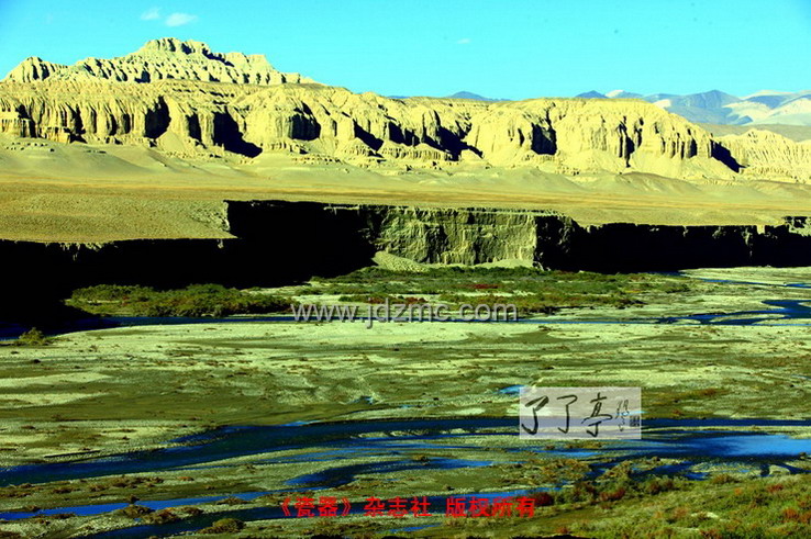 远远观看,土林与群山草坡苍茫纵横,极似一座气势恢宏的城市,城市高楼林立错落有致,层层叠叠节奏迷人,阳光下穿城的河流犹如金带闪闪发光,近坡远岭与城市相互映衬,完美融合。高原的天蓝云乳、草黄石紫与城市相映生辉。传说中扎达城是格尔王的领域,难道格尔王是个伟大的建筑设计师?抑或扎达城是神的手笔?