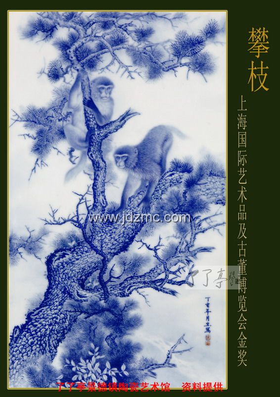 年青花瓷板《攀枝》获上海国际古董艺术品博览会金奖
