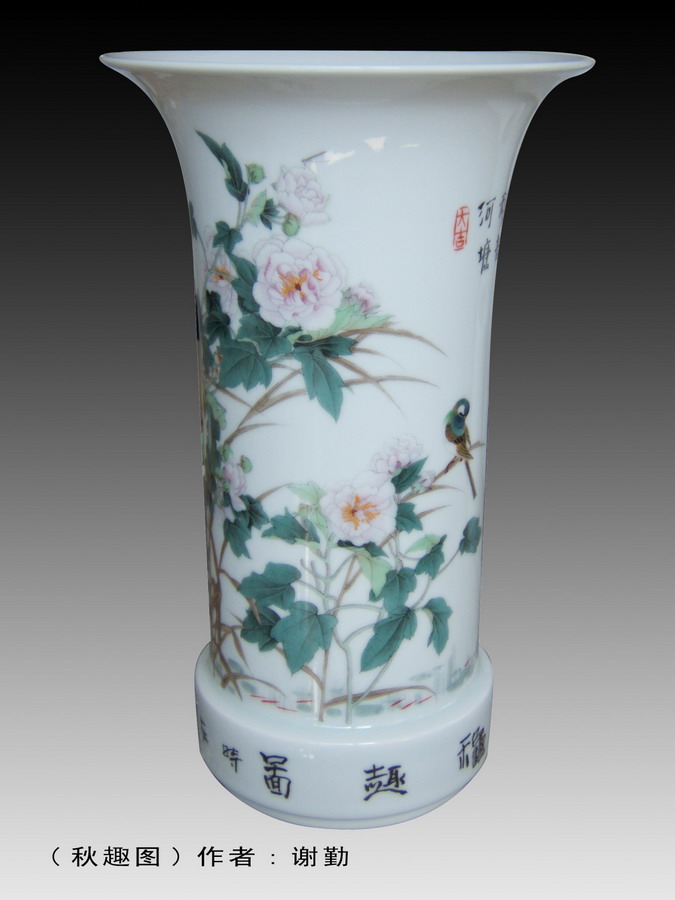 在十余年的陶瓷艺术生涯中,为了扩展创作视野、搜集瓷画素材,她从大自然中陶冶情志,寻求灵感,使作品达到造型、神韵、意念的有机聚合。她喜欢釉上彩装饰,也爱好彩绘与颜色釉相结合的综合装饰,在创作中对各种釉色的掌握,各种颜料的调配,各种手法的运用,肌理、裂纹、有光、无光等各种效果的试探,均取得了成果。在长期陶瓷实践中,谢勤有追求、有探索,是一位思维灵动、有实力、有才华的陶瓷艺术家。