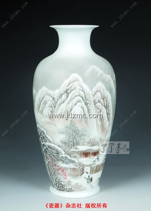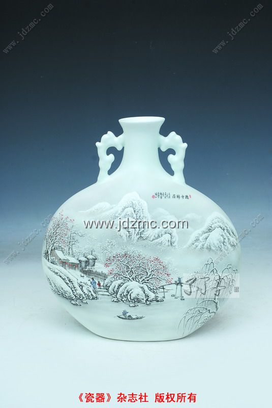 人物简介:袁智勇,生于1973年,江西乐平人,江西省高级工艺美术师,毕业于景德镇陶瓷学院。袁智勇出生于陶瓷世家,自幼酷爱美术。师从其父中国陶瓷艺术大师袁世文,主攻粉彩青绿、雪景、山水,既具较全面的理论修养,又具坚实的传统功底,对釉上和釉下陶瓷绘画技巧都得以真传,作品运用中国画的技法,用笔讲究、画法细腻,工笔中见写意,构图严谨、静中见动,使人有身临其境的感觉。
