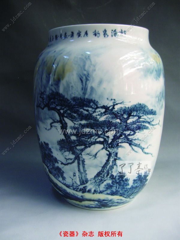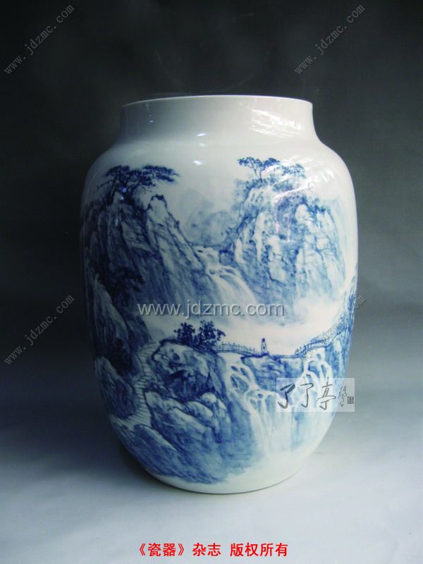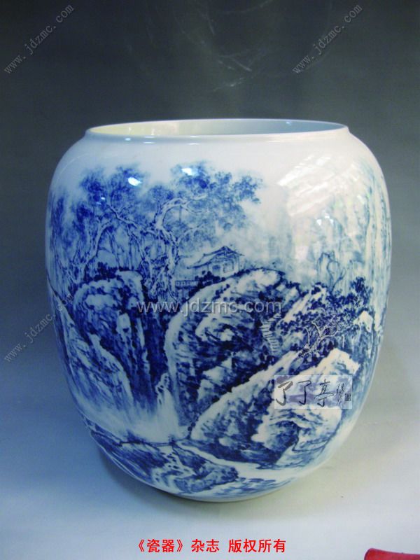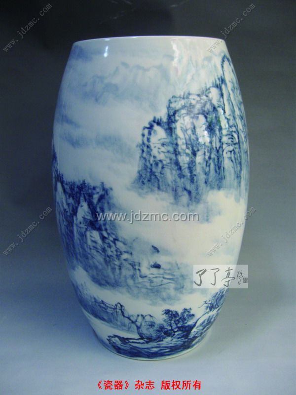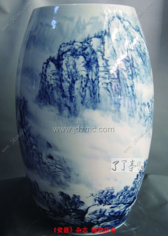 刘玉凤:瓷器本身就是一件美的工艺品,如何让它美中更美,关键是加上去的装饰是否突出了瓷器本身的美。实际上,像我创作的青花山水,主要的目的也是为了突出瓷器本身的美。所以,我认为陶瓷虽然是工艺品,除了需要掌握一定的绘画技巧外,还必须掌握相应的工艺技巧,才能将瓷器的美完整地表达出来,这对创作者是一个考验。