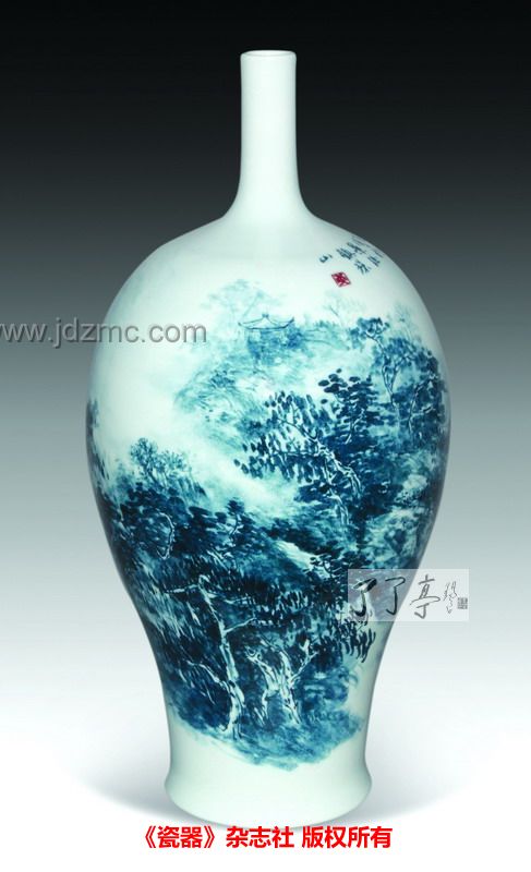学艺期间,黄斌选择了青花山水作为自己主攻的方向。那个时候,在老厂作坊里学徒的他,已经能够凭借天分,引起人们的关注。“记得有一位陶艺家经常到我工作的作坊里去,看到我的作品后,总是忍不住指点一番。后来那位陶艺家告诉我,我在这上面确实有点天分,因为画得不错,才能得到他的指点。”