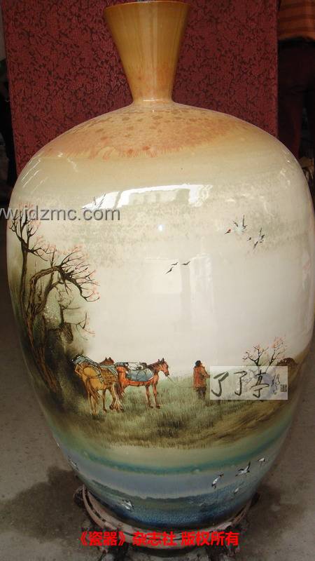 通过多次试验,掌握其发色,在着色剂、助熔剂等组成合理,以适应画面需要。这种新配制出的釉,除了表现花,还可表现象人物的衣裙等物象。