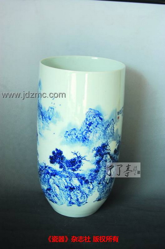 了了亭 景德镇陶瓷艺术馆 资讯 本文刊发于《瓷器》杂志社:水墨曾是孤寂、苦闷、清高、狂傲的,但邓万春的瓷画,这些元素已经荡然无存,加入青花元素的水墨画,如陈年老酒般醇厚,略带甜美但绝不低俗。