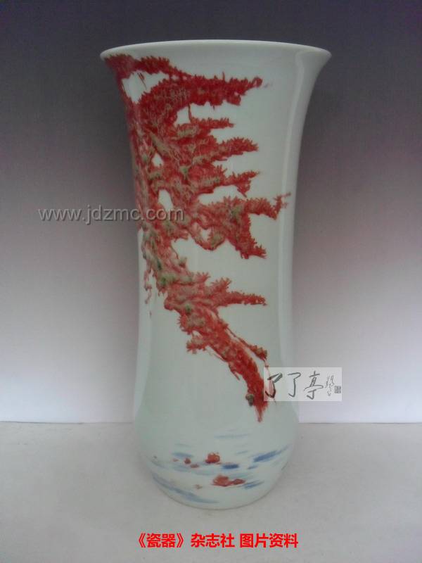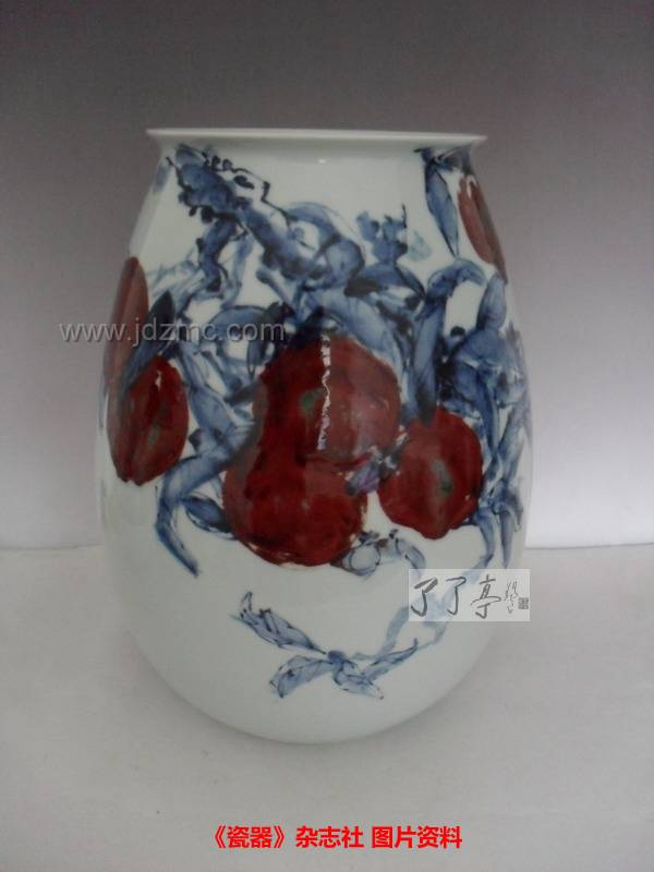 釉里红,历来被人们称为瓷中瑰宝,由于她的烧制难度和不确定性令当今多少画家望而却步。它的神奇魅力一直吸引着所有的艺术家,它以特有的那一抹艳红征服了所有的从事陶瓷艺术的人。只是釉里红与其他瓷器比起来,它的烧制难度极高,对工匠而言更是极大的挑战。由于铜红料甚为敏感,制作过程中无论是底釉成分、铜红料比例或焙烧温度,都必须达到最精确的水平,稍有偏差,便往往导致其不能达到预期的一抹艳红。因此,“釉里红”在创烧之初很不成功,轻易烧不成,色彩鲜艳的“釉里红”难得一见,颜色多为浅红、黑红、灰黑色。 由于难度高,不少从艺者忘而却步。可天生有股子拧劲的胡英姿却以越挫越勇的精神挑战着高难度的工艺。