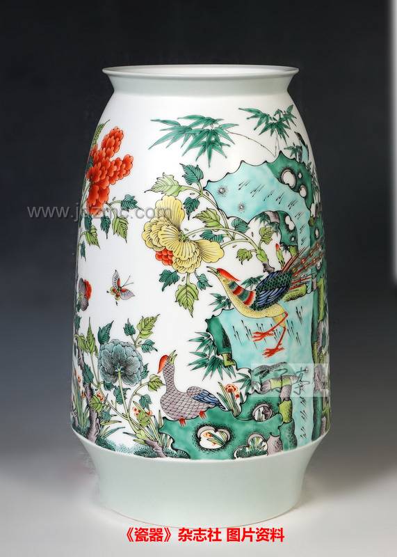 上世纪90年代,由于古彩不被看好,揭金平也曾改做青花写意,对于这短暂的青花生涯,后来重新回到古彩领域的揭金平并不觉得是浪费,反而是一种意外的收获,因为如不灵活运用,古彩的线条容易僵化,而青花写意恰恰从相反的方向为揭金平开启了一扇大门,他因此对线条的运用有了更灵活的认识,对于线条的气脉、贯穿的气韵有了全新的领悟。