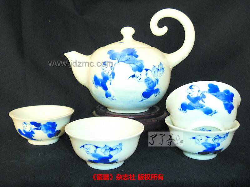 如今,英海珍对仕女、婴戏、罗汉等人物的绘制已颇有心得,她想得更多的是如何突破,突破工笔的传统,在青花写意领域进行探索,寻找属于她的那份“瓷语”。