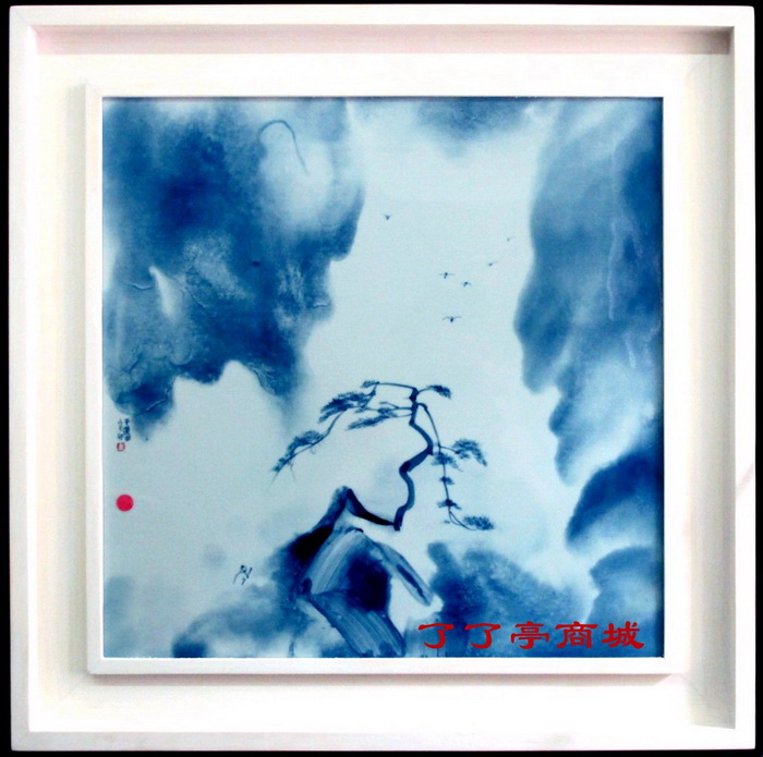 这位从材料科学出发进入艺术殿堂的安徽小子,最早追求的不过是一种纯粹的青花肌理效果,那个时期的抽象创作带有明显的技术炫耀成分,在我看来,当时的干道甫更醉心于青花料在泥坯上流淌后的纹与痕,他无意诉说,无意表达,一味敷陈。我想,接下来应该是某次偶尔的氤氲,才让干道甫从自己的实验中发现了最中国的意境,一点墨,一叶帆,一片荷,或者一线隐隐的远山….