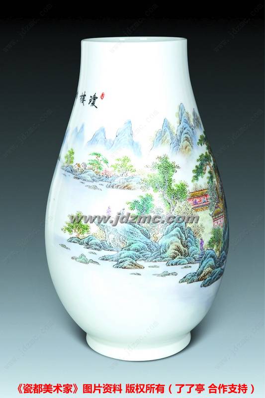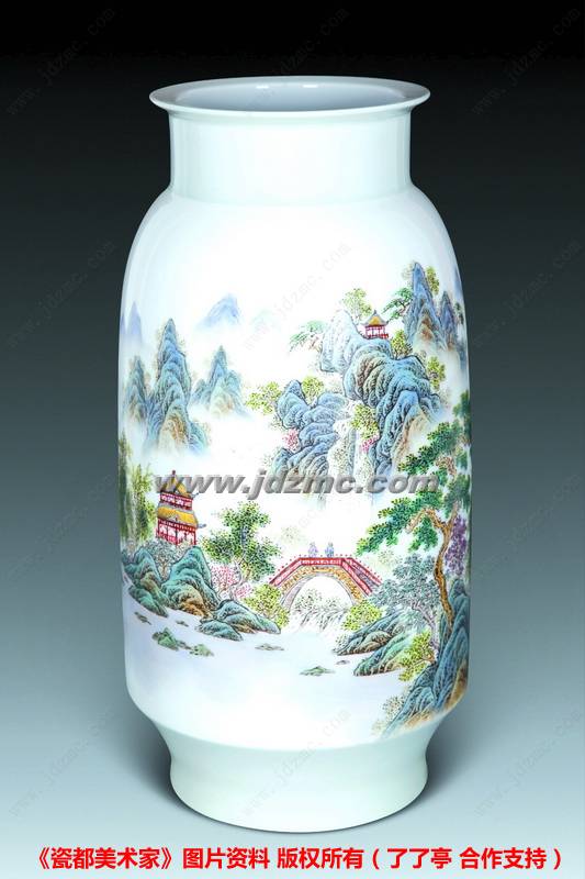 他认为,艺术的道路是无止境的,是不停变化的,在这条漫漫长路上,只有不断地探索、不断地创新,继承传统绘画技法,融合时代审美意识,才能创作出更多更美的作品,从而诠释和升华粉彩山水陶瓷艺术的华丽和庄严。