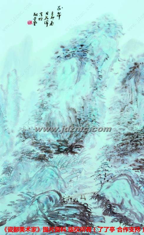 在绢质仿宋山水界画中,你可以看到胡伟平的线条与造型之功,在宣纸签名本的国画中,你可以看到他运笔用墨的力道,在泥火粹炼的瓷画中,你可以看到他青花色釉及颜料的文人画情趣。