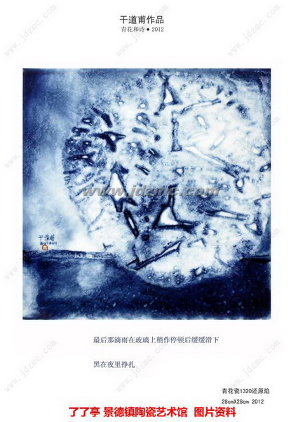 我一次次站在阿干的作品前,被那浓烈的青花气场所震慑,我没想到他的作品能如此地通灵,你能从中匝巴出元青花的凝重、明青花的矜持和清青花的隽永,当然,珠山八友时期的市井勾栏、新中国前