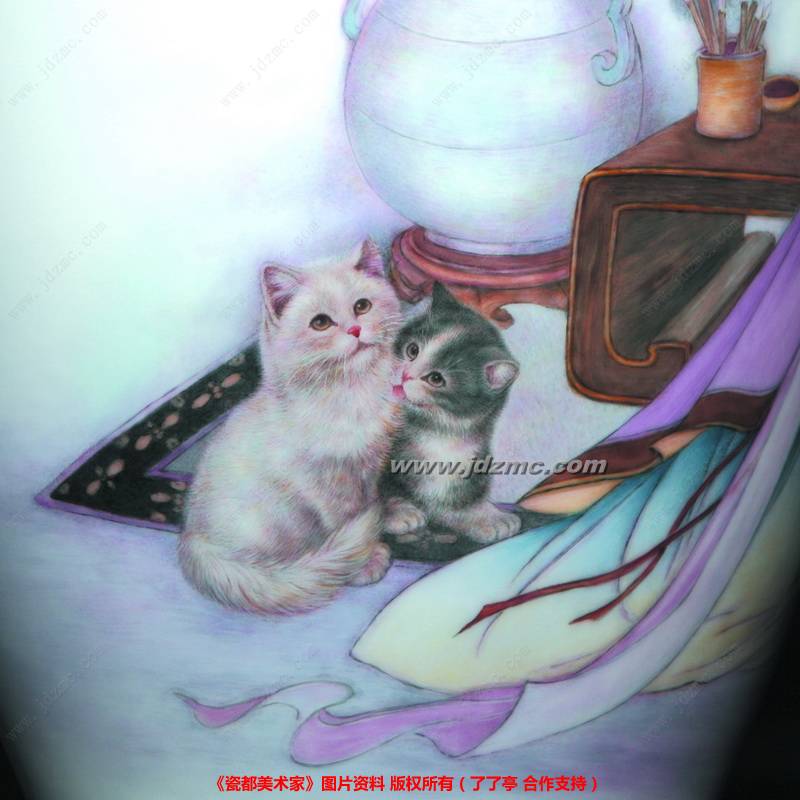 邵同忠善从历代景德镇陶瓷名家中精求古训,取人之长,融入自我;“外师造化,中得心源”。师古而不泥古,逐渐形成自己独特的艺术风格。其作品动静相宜,趣成天然,生活气息十分浓厚,尤擅长画猫虎等动物,特别对猫虎等动物的皮毛质感把握十分到位,能随动物自身的结构转折,做到浓淡有别。其笔下的猫虎构思巧妙,形象逼真,或温顺可爱,或凶悍威猛,神态各异,具有较高的艺术功力。