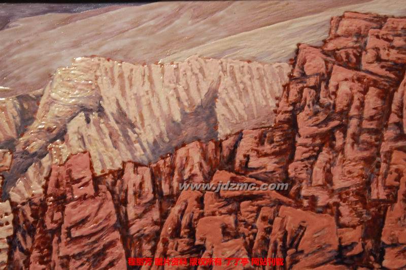人家艺术家进西藏,他会这样去表达,你去寻找些什么?当我们再去寻找的时候,觉得西藏的那种大野大荒大美的,那种世界上最后一块净土的神圣的感觉,那种风光实际上包含着很多人文的东西,它在绘画界没有得到一个很好的表达。这不仅在景德镇,在国画界油画界,都没有很好地表达他。这个有些东西,一叶障目,说起来好像一个笑话一样,拿个东西挡着眼睛就看不见,你到了那边,他就真的让你看不见。你就看见了很多表面的东西,浅层的东西在里面,所以这个,我相信在相当长的一段时间内,走出去是景德镇当代绘画一个非常重要的内容。