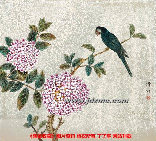当我们看到王清丽创作的陶瓷粉彩花鸟作品时,宁静、雅致、明艳等视觉感受扑面而来,她的陶瓷粉彩作品就有这样的艺术特色。她的作品清新淡雅,韵转低回,使人感到非常的亲切。王清丽陶瓷作品中的工笔花鸟,充满了清秀灵动的生命情致,童真烂漫之气。