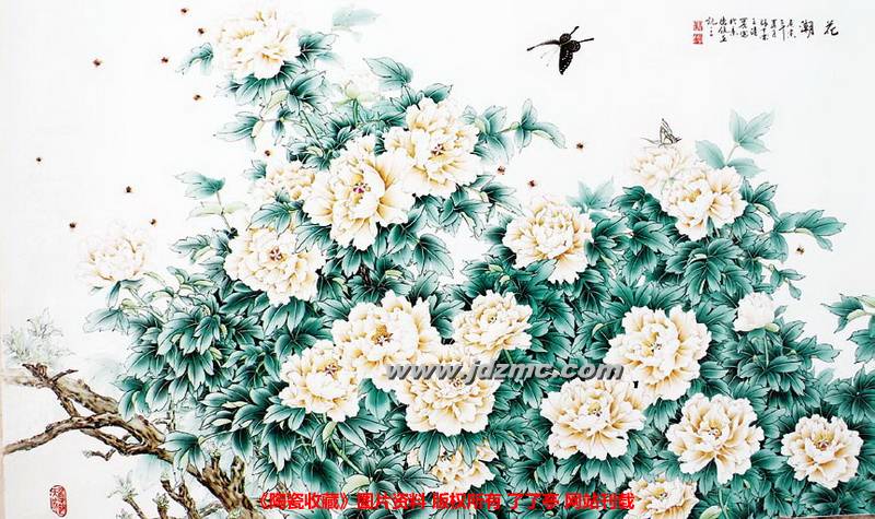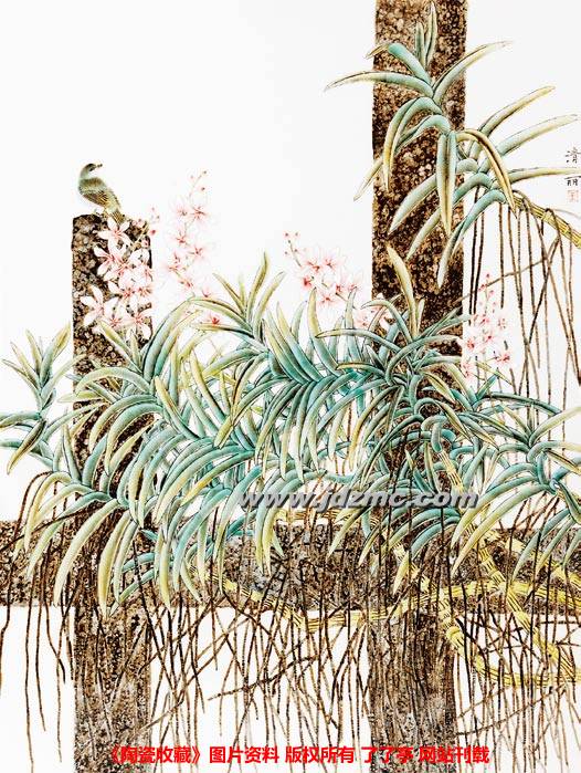 王清丽的陶瓷粉彩花鸟作品给我们呈现的面貌是精神的超越,她对岭南花鸟传统继承心领神会,借鉴生活而后创作,始终贯穿循环,观其作品无论是一花一草,皆根植于生活,取法于自然,使之幡然升华,别开生面。她的陶瓷粉彩花鸟作品不仅取自客观自然,更是她内心气质的一种表现,富有激情的冲击力,常常情到之处,挥毫泼墨、点染成趣,反而成了一道风景。而粉彩花鸟正是王清丽性格的化身和心灵的寄托,以点染接色的工笔图式语言来表现内在的精神与心灵的和谐,及其对写实精神叙事性的关照,在情感和符号上去追求生活的诗意与绘画真实并举,正是她在作品中呈现给我们的视觉思考。或许,王清丽看来,宇宙发展过程类似于一个人的心路历程,其本质也是一部大型花鸟画或奏鸣曲。她从生活吸取花鸟画这种体裁,并把这笔遗产推到了具有完美形式的、对立统一的美学高度。因此,王清丽陶瓷粉彩花鸟作品的生命力,恰在于矛盾、斗争着的视觉触动造成了纯粹色彩壮丽、宏伟的运动。