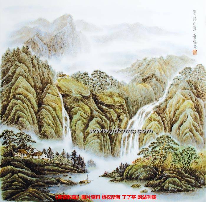 山水瓷画是精神品质与自然物象最完美的融合,接续的是最博大深厚的中国民族文化。不断对传统陶瓷古典文化的学习,使董亮内心深处不断积淀着深厚的传统文化情感,并形成士人式的审美体验。而董亮则运用一枝画笔,将这种审美体验通过山与水的晕染中导向理想境界。