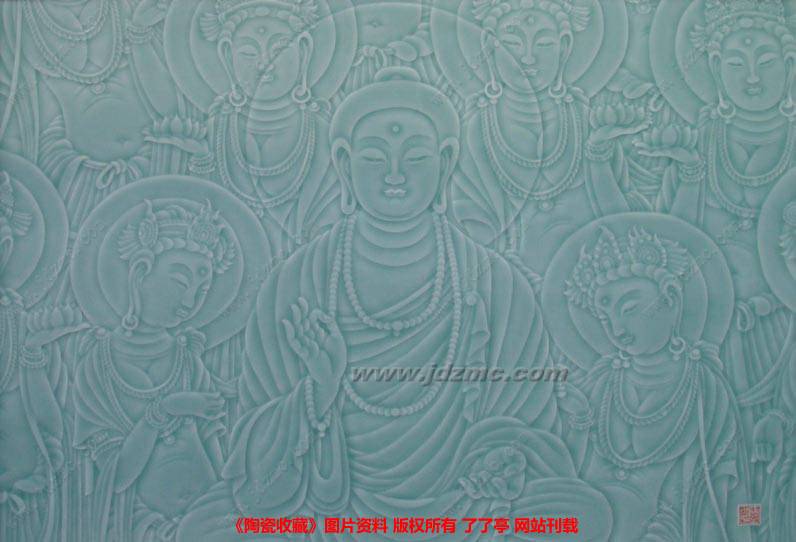 王强是一位忠于自我艺术理想和追求精神价值的陶艺家,这种内在约束并非可以轻易坚守,而考察一个艺术家的真诚和纯粹价值的直接方式是了解其作品风格演变的连贯性。王强的作品在取材、色彩、形式等方面都有特定角度,这种稳定性使其作品逐步风格化,艺术上走向成熟。从王强的作品取材上,人们可以感受到作者强烈的社会责任感和深切的人文关怀。他的《千手观音》以莹润的绿色表现出来,像一块巨大的美玉,让人感到平安、祥和、宁静,通过作品来表达一种向善向上的力量,让人们从这件作品中真正感受到从善如流,社会美好的意愿。如果你帮助别人,就有一千双手来帮助你,这样一件艺术品的意义远远超越艺术本身,这样的作品是值得人们欣赏和记住的。