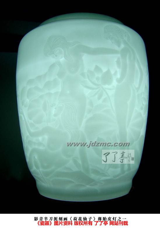 除了对青花分水情有独衷以外,林凤还师从孙同鑫,研习青花泼墨,另外,她对薄胎半刀泥技艺也有独特领会,曾多次撰文论述这项传统技艺。在《从影青瓷谈稀世绝雕》一文中,她动情地写道:“笔者满怀激情对着中华陶瓷文化的崇敬热爱和珍惜,希望稀世绝雕不再失去宋朝的灿烂,愿它的刻划花薄胎技艺像其它陶瓷一样重创辉煌。”