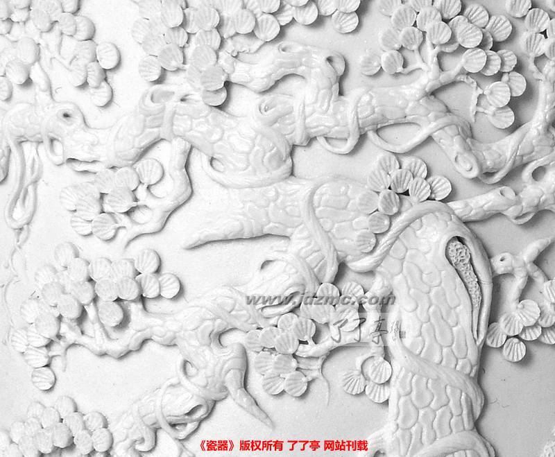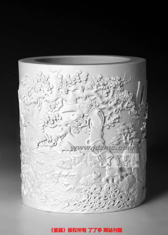 瓷雕和瓷画不一样,需要起素描稿,这无异于第二次创作,因此其难度非同一般。要在瓷胚上以刀代笔,刻出准确形象;如果是临摹书画名作,还要体现笔的力度、墨的枯润,达到水色交融墨藩氤氲的效果,着实艰难;更何况还要剪裁得体、布局停匀、小中见大更加不易。然而作品一经刻成,即刻凹凸有致,瓷的光洁与书画的富丽融为一体,瓷的圆浑和每一个画面跌宕起伏,闪闪烁烁仪态万千。