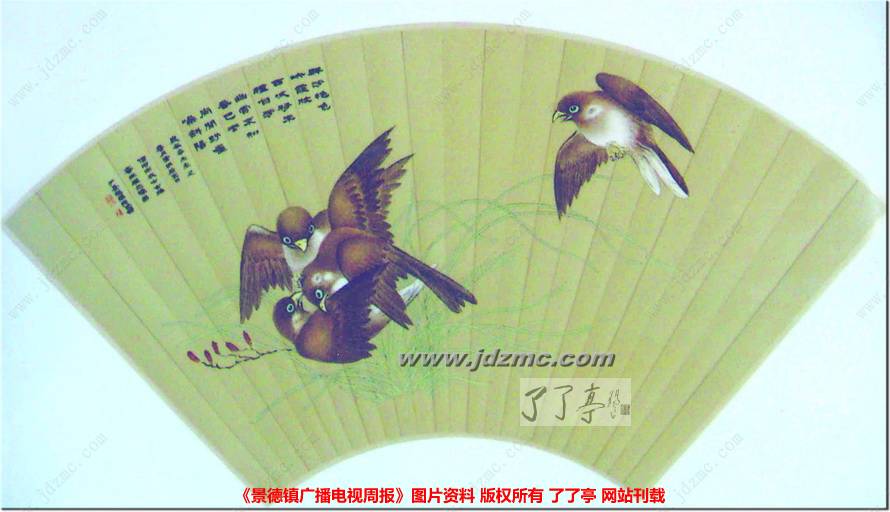 1989年:日本恩巴中国近代艺术馆选中《江山暮雪图》扇形瓷板列为馆藏,《禽戏图》古雅彩扇形瓷板次年被该馆收藏。