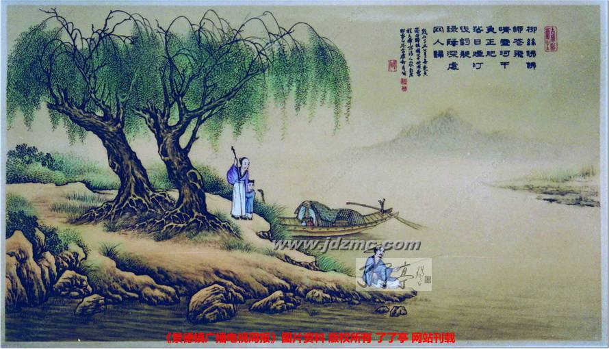 程元璋对古人倒并不顶礼膜拜亦步亦趋,而是师古不泥古,汇前人众家之长融为自己的特色。他创作的仿古画,既有国画的散点透视,也有西画的焦点透视,各种线条运用和色块渲染并重,营构布局意境时也不忽视细节处理。他的仿绢扇页瓷画,折痕阴阳面分明,注意明喑投影关系,很有立体感:山水人物瓷画,一改古画的幽冷凄凉情致,而让画中人物着—袭红衣,产生聚焦的视觉效果,还使画面溢出溶溶暖意……诸如此类的求变创新尝试,在他的作品中随处可见。