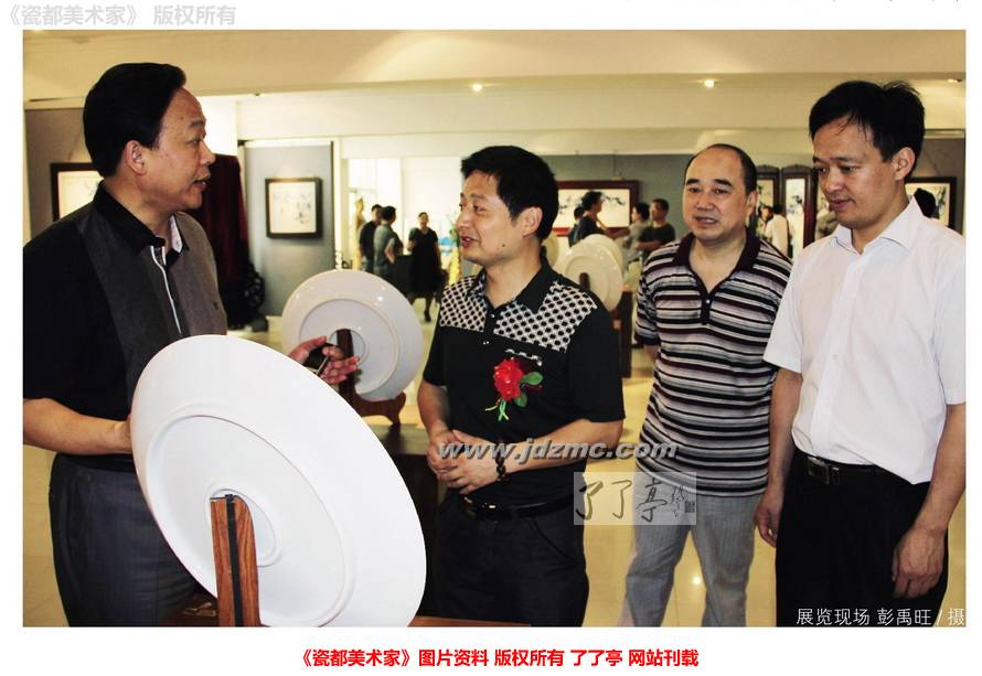 邵继梅(景德镇陶瓷评论家协会副主席):余斌的画展,我觉得确实不错,很有同感和共鸣。构图上的讲究让人看得很舒服,功底相当深厚;题材广泛,从花鸟到生肖都很有动感,单能成画,连幅成景;汾水方面下足了功夫,就像水墨画跃然瓷上,层次好,味道很足。