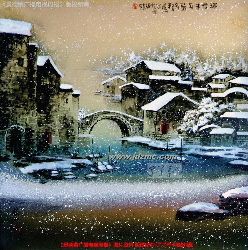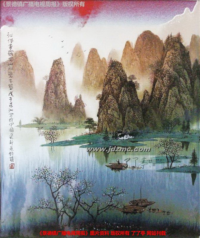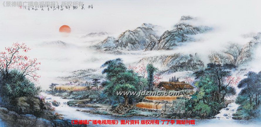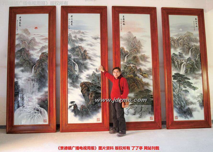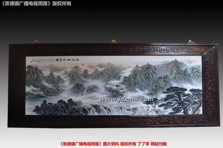 2012年底,由余晨洲老师作为主要创作者,他与王锡良、张松茂、徐亚凤、何叔水、涂序生、俞暄等大师共同合作了三幅大型瓷板画,其中两幅瓷板画当场被送往北京,剩余一幅《江山如画》由景德镇文联收藏,至今还陈列在景德镇瓷画院。也许年轻时的经历,就注定了余晨洲要与壁画这样的大场面较量了。