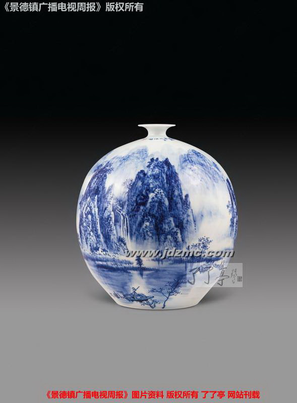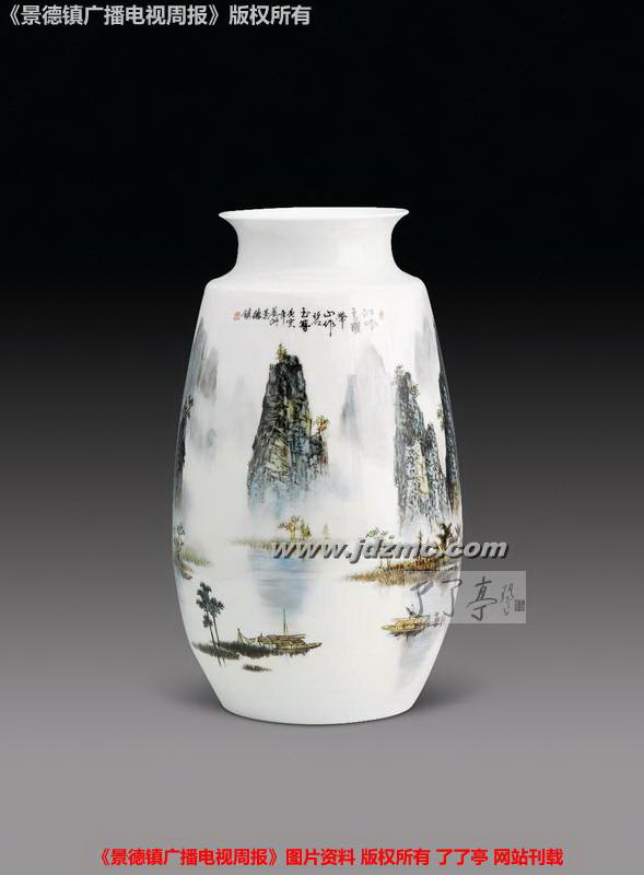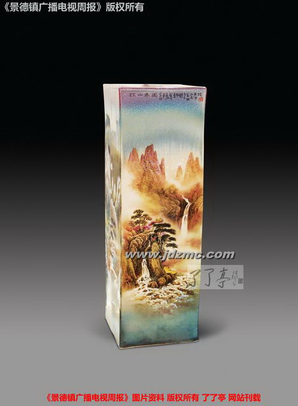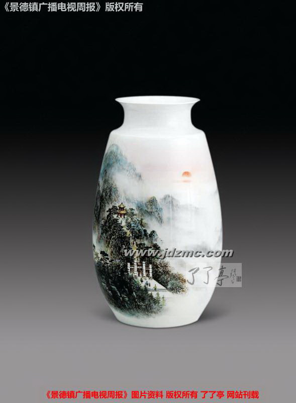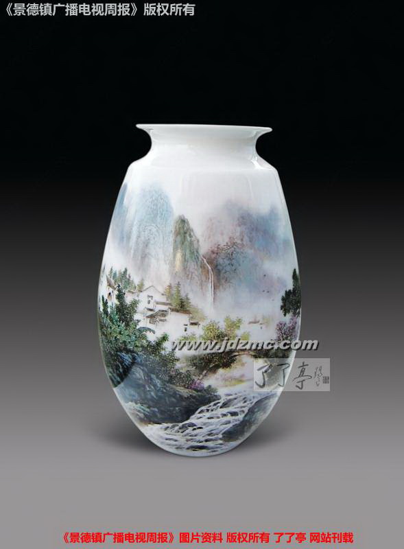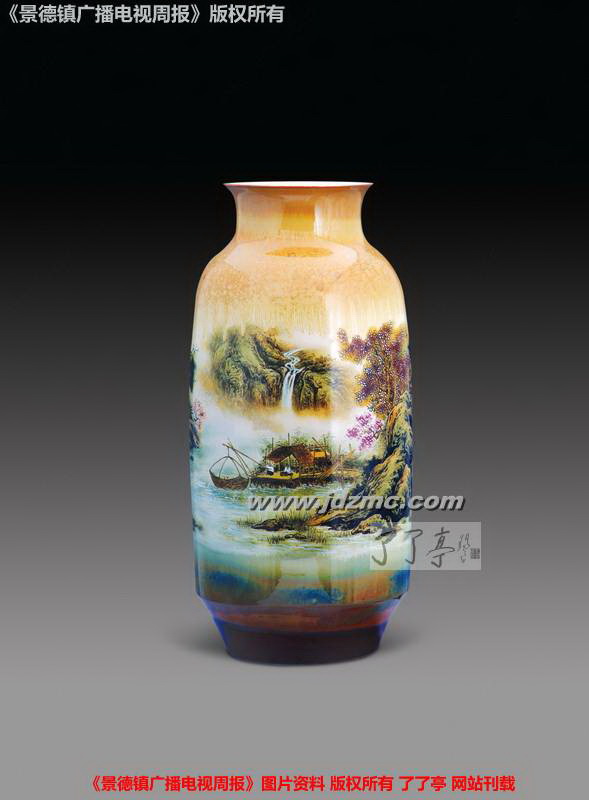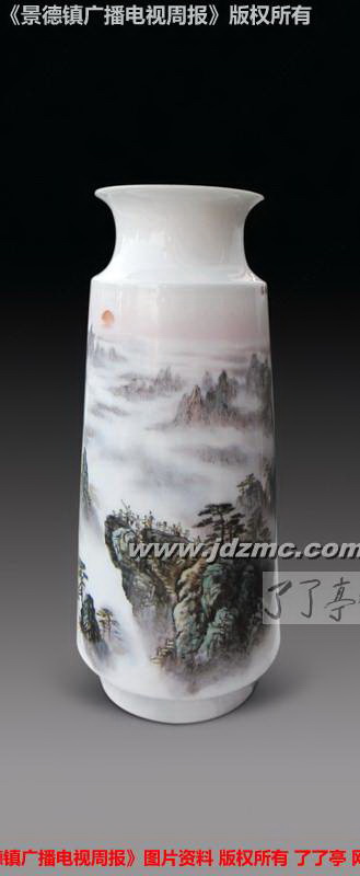 第一次见到余晨洲老师,笔者怎么都无法把个子不高的余晨洲老师,和我之前看到的他的苍苍茫茫、大气磅礴的大型山水壁画联系在一起。可是余晨洲老师随后的几句话,他言谈举止的率真刚直,为他的作品提供了最确凿的理由。正如古人所言“画山水者画心也”,余晨洲老师的山水瓷画正是他人格魅力的真实写照。