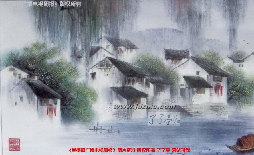 一次偶然的机会,他在晚上逛景德镇的老街“赛跑坦”,看见有人用瓷面砖拼在一起画的瓷板画,生意还跑火得很。他想自己弄景陶瓷厂的面砖有得天独厚的条件,为什么不尝试也去画面砖画呢?余晨洲开始在旁边有意识地看别人画画,回去后向艺术厂的熟人要一些陶瓷颜料,自己在家里一边琢磨一边绘画,然后找别人搭烧自己画的瓷器。一来二去,余晨洲还真在赛跑坦卖起瓷板画来了。虽然生意不是很火,但比在工厂挣工资好多了。