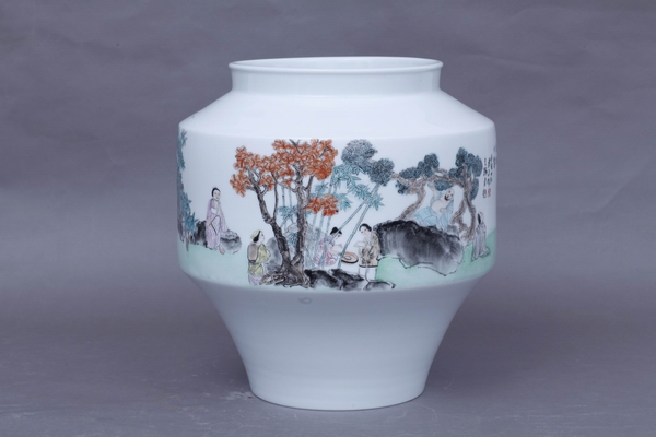 傅建文在创作一种独有的意味时,除了用一脉相承的画风作画以外,更注重陶瓷所体现的故事,在他笔下,陶瓷只是一种载体,一种讲故事的媒介,他通过这种媒介,讲述他心中的文人高士,讲述他梦寐的逍遥自在。