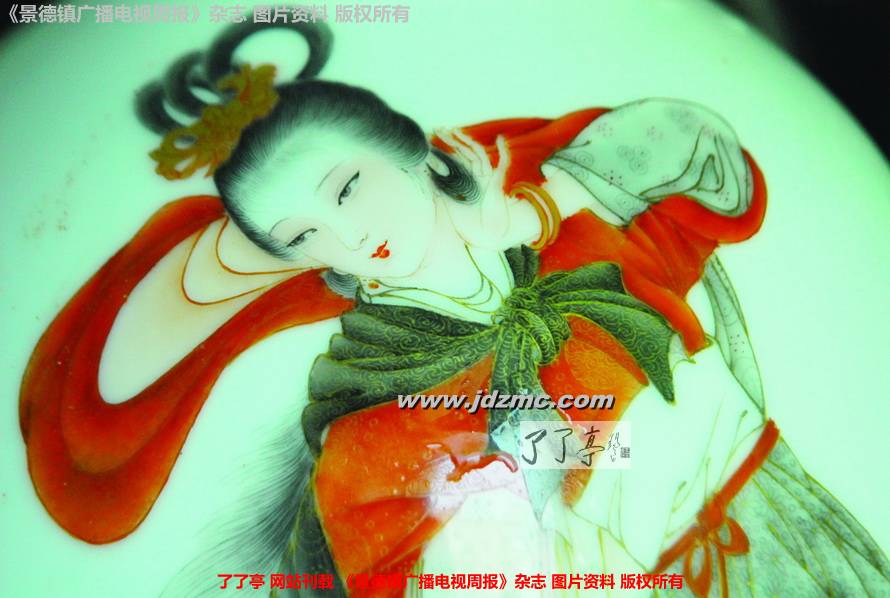 其实,在陶瓷界代人落款的事并不鲜见。刘雨岑的徒弟石宇初擅长画花鸟,但他早期作品的落款经常是师傅刘雨岑代笔。吴康的扇舞,一定有朱丹忱的父亲朱观发落笔的。甚至夏忠勇先生自己的得意门生、高级工艺美术师熊金荣最初的几幅作品,就是夏忠勇先生为他落款的。尽管熊金荣现在已经成为陶瓷工笔人物、花鸟瓷画方面炙手可热的青年艺术家,那几幅由师傅夏忠勇落款、熊金荣绘画的早期作品,因为这之间的故事,才越发显得珍贵和体现它的艺术价值。