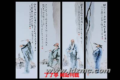 王品刚创作的人物题材作品还有一些是表现传统人物的题材。比如,瓷板画《清初四僧》,这是件书画结合的作品。构图简练,国画感很强,画面空灵,人物造型夸张、变形,有一种令人耳目一新的视觉冲击力,给人以审美的享受和愉悦。