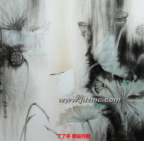 三、花鸟系列。评判一幅花鸟画的标准,最主要的就是两个字:格调。所谓格调,就是指这件作品的艺术品质和美学趣味。王品刚创作的花鸟题材作品格调高雅。比如,瓷板画《一鹭莲科》,既有工笔,又有写意。作品具有现代性和装饰性以及国画性。作品表现了一只白鹭悠闲地站立在荷塘荷叶之中,它身旁的荷莲亭亭玉立,荷花盛开,荷叶舒展,一派喜庆的景象。这是一件典型的人格寓意的花鸟画佳作。托物言志,标题《一鹭莲科》,起到画龙点睛的作用。
