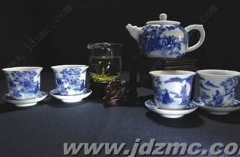 仍是青花山水。昨天看一位安徽来的画家用黄花釉、铁锈红、釉下黑等颜色釉画山水,感到画面太脏,不喜欢。我喜欢单纯的色和单纯的事物。在纸上作画时,也是最爱水墨。是一位朋友说过,世界上最难做的事就是将复杂的事简单化,作文是这样,作画也是一样的道理。这我是明白的。一直以为,景德镇的瓷器最美的仍是青花。单看那明代青花瓷,来自民窑的,往往就是那么几笔简略的线条,几抹那么单纯的色彩,却让人一看就心颤心动。我不知道我画的瓷,将来能否让人心颤心动。但我对这些白色瓷泥充满着敬畏和深情。我也对窑火充满着虔诚之心。我知道只有在它们的默许和神授下,我画的青花才有可能生发出清雅的色调来。这是比纸上作画更有意味和神秘之处。
