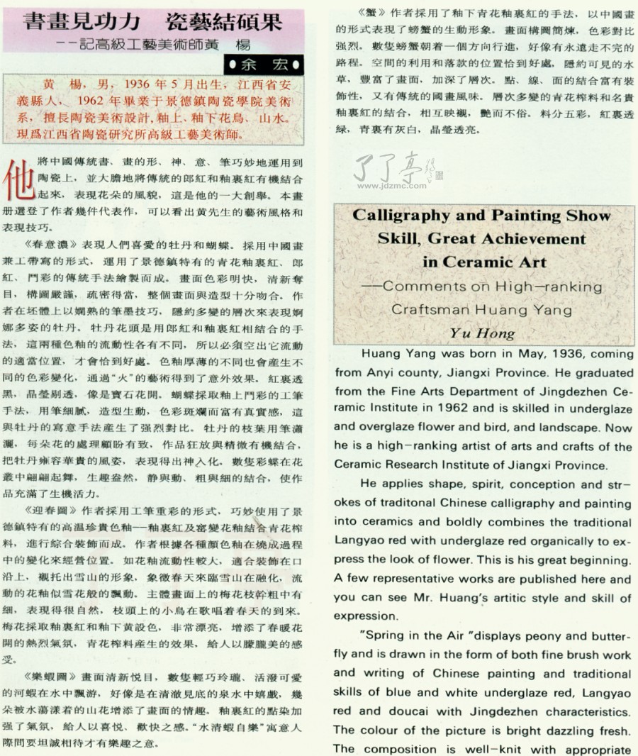 | 书画见功力瓷艺结硕果—记高级工艺美术师 黄杨 95年资料 | |||||