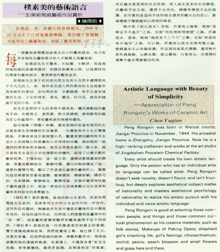 | 朴素美的艺术语言 彭荣新陶瓷艺术作品赏析 95年资料 | |||||
