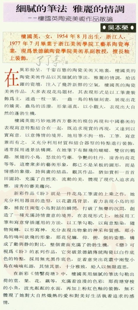 | 细腻的笔法雅丽的情调—楼国英陶瓷美术作品散论 95年资料 | |||||