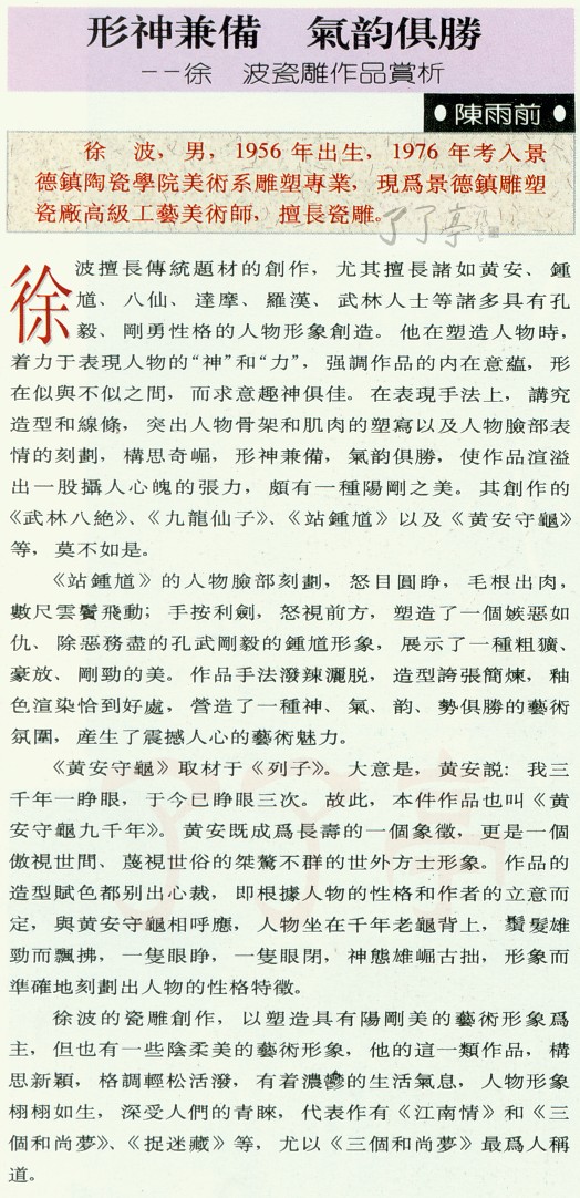 | 形神兼备气韵俱胜 徐波瓷雕作品赏析 95年资料 | |||||