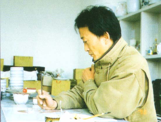 『了了亭独家刊载』1988年1月22日。中国江西陶瓷研究所景德镇陶瓷艺术名家作品展正在这里举行。 大厅内人头攒动。艺术家,收藏家,记者,商人, 官员……正以极大的好奇心,意欲目睹此次展览的一出重头戏:瓷都艺人现场献技。 一位清瘦文静的青年的表演台边站满了人群。台上已摆着几件他即席创作的作品。 “先生,你能用五个不同的钟馗故事为我绘制五块瓷盘吗?”一位六十开外的老人面对这位青年,目光充满着怀疑,企望的神情。钟馗这样一个性格多样化的、中国古代的神化人物,许多香港同胞信奉的“保护神”形象,这位年青人能画出来吗?他期待着。 “让我试试看吧!”谦逊的话语中更多的是自信。 只见他时儿勾勒,时儿抹彩,顿时,几十双眼睛被他那洒脱洗炼和恰到好处的笔触给“逮”住了。伴随着不断的啧啧声,第一块“钟馗试剑”,第二块“钟馗捉鬼”……钟馗那威严、机智、灰谐、鲁莽、豪放的形象栩栩如生地活现在人们的眼前。 那位老人早巳关不住他的激动和敬佩之情,握住青年的手说: “真是奇才啊I这些瓷盘我买了!” 这位青年就是江西省陶瓷研究所31岁的艺术室主任龚循明。 香港《大公报》曾作过这样一段评述: “瓷都景德镇在千百年悠久而灿烂的历史发展进程中,给后世留下了精湛绝作的技艺,也造就了历代数不尽的艺术巨匠……龚循明便是当今景德镇青年一代设计人员中的佼佼者。” 对此,循明并不很在意,因为他所想所思所执著追求的,是充盈他整个生命的儿时的晶莹的梦…… 瓷都景德镇是一块充满神奇和幻想的土地。 那随地可见的瓷片、瓷泥,釉果,石膏模……不时地给人们翩翩遐想。 小时候,循明常常好奇地望着这洁白晶莹、色彩斑澜的世界.终于有一天那种好奇的童心开始在,这块土地上寻觅,他的小口袋里也就常常充盈着白的晶莹,彩的斑澜。 于是,那些瓷片,瓷泥、釉果便成了他的“积木”、“橡皮泥”、 “画笔”。他简直被这些异彩纷呈、变化无穷的玩意儿着迷了I他用细嫩的小手组合着,捏弄着、描绘着……是山,是水、是花、是草、是人,是物……什么都不是,什么也不象,但他那玩弄的神态却是如此的专注和入迷。 五岁那年的一天,父母上班了,他带着弟妹在家“导演”了一场闹剧;木板墙上涂满了用釉果描的白色线条。他说是山是水;地面上布满了由瓷片组合成的图形,他说是花是草;桌椅上摆满了、拿瓷泥捏成的泥团儿,他说是人是物。父亲下班目睹了家里的一片狼籍,先是一阵恼怒,片刻之后又百感交集。这位少年时期曾学过一年瓷画的普通干部似乎悟出了点什么,他爱怜地抚着小循明的头,他笑了。 “循明,你能画得这样好吗?”父亲指着墙上一幅花鸟图问儿子。 “我长大了要画这花儿鸟儿,还要画好多好多的东西,还要做好多好多的瓷器人、瓷器动物,还要……” 幼小的童心真是一个多姿多彩的、晶莹的世界! 第二天,父亲买来了铅笔和白纸。他也就成了循明最早的美术老师。 循明跟前的世界是一个五彩缤纷,新奇陌生,同时又是充满爱的世界, 母亲在循明心里是一个勤劳、善良、宽厚却又了不起的女性一一党员、省劳模,一个普通的粮店营业员。小学时的假日,她带着循明为哪些孤寡老人、盲人残疾送粮上门,那份爱播在了循明的心田。她又常设法为循明借书,使循明得到了许多知识的灌输。难怪同学都管他叫“百事通”、 “故事王” 。 也许是从小随父亲步行到十里外的南山打柴的缘故,每当学校举办运动会,跑步冲在最前面的总是他,每当举行文艺演出什么的舞台上也少不了他的身影。 如果说,上中学时他的一篇发自内心表白的暑假作文《我爱晶莹的白瓷》使语文老师吴放对他产生了偏爱的话,那么,由于他的勤奋、刻苦、聪颖更让美术老师梁海姣付出了慈母般的心。他忘不了梁老师这位真正的艺术启蒙老师的谆谆教诲。在教室、在梁老师的家、在野外写生的湖畔江边,他得到了艺术的熏陶,品德的陶冶。 艺术的种子在循明心中萌发了。 1975年夏,18岁的循明高中毕业。 后来,他分配到景德镇雕塑瓷厂当普工。工厂里许多老艺人的精湛技艺使他惊叹不已;那些精美绝伦如玉雕翠凿的瓷雕叫他称羡不止。中华民族文化的瑰宝——瓷雕在他心目中渐渐高大起来。他感到一种无形的动力在驱使着他…… 一天,他喜闻恢复高考的佳音。他喜不能寐。他自信地报考了。 揭榜时,他的语文和美术成绩全市第一。 一阵狂喜之后他又立即陷入了深深的痛苦之中。此时,他想到了因夭折的小弟治脑瘤而负债累累的家境。 为了儿子的前途,也因负债的家境,父母只好送循明进了景德镇陶瓷学院。但循明心满意足了,他终于可以在艺术的海洋遨游。他的脑海里又是瓷的世界。 冬季,天寒地冻,手脚冻肿,他不敢懈怠, 夏日,热浪如火,汗流浃背,他手不释管。 终于他以优异的成绩毕业了。然而现实生活却总是捉弄人,他被分配到湖北工作。 后来在武汉人事局的理解和帮助下,循明辗转回到了他的用武之地一一景德镇陶瓷美术研.究所。在循明的脑海里又重新泛起了他那眷恋着的晶莹的梦。 ——循明面前是痛苦的现实,经历了那个不堪回 首的十年后的瓷都,陶瓷艺术人才已出现了历史不可愈合的鸿沟,单调的产品结构和落后的生产工艺以及封闭式的经营方式,使这个历史上誉满世界的瓷都黯然失色。 面对这个现实是痛苦的,