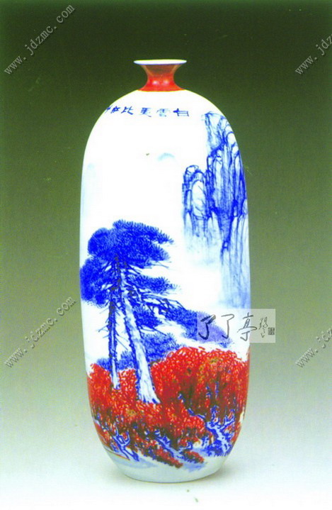 “在景德镇的30年时间里,是我转型的30年、学习的30年、探索的30年。”黄美尧说,初到景德镇,他对陶瓷不熟,他一边教书,一边学画瓷,并在一些老艺人的指导下,从事陶瓷艺术创作。黄美尧创作的重点是山水,有粉彩、古彩、新彩和青花。
