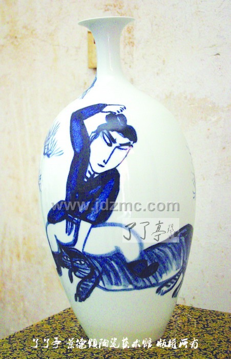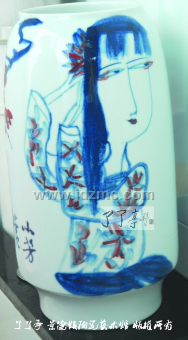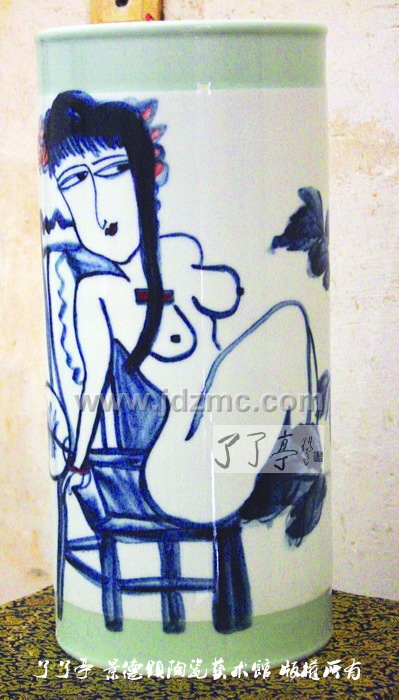 的确,景德镇是座艺术之城。景德镇陶瓷艺术是泥与火的艺术,是艺术与工艺的完美结合。潘杰被陶瓷工艺表现绘画的魅力与神奇所深深吸引。近几年,潘杰又将手指画创作引向了陶瓷艺术品领域。“用陶瓷表现手指画存在着窑变等诸多不可控因素,一窑的瓷器最后能成为正品的不过一半。这是挑战,但这种不可预期也正是这种艺术门类的魅力所在。”